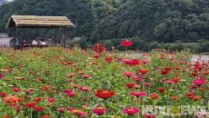 민족대명절 추석 당일인 10일 강원 평창군 평창읍 제방길 일원에서 개최된 2022평창백일홍축제를 찾은 관광객들이 백일홍 꽃밭을- 2022-09-11 11:54