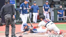 [사진] 홈 도루 아웃 최승민, 당황한 박건우