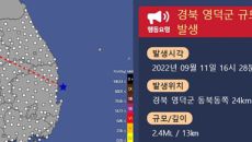 경북 영덕군 인근 해역서 규모 2.4 지진