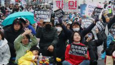 '尹 탄핵' 인용 축하 집회 참석한 용혜인 모자