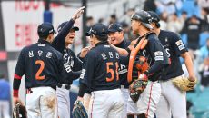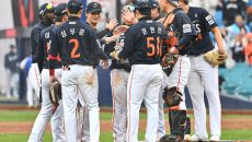 [사진] 짜릿한 역전 승리 기쁨 나누는 한화 선수들