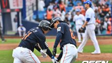 [사진] 문현빈, 짜릿한 역전 홈런 하이파이브