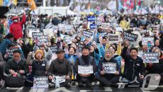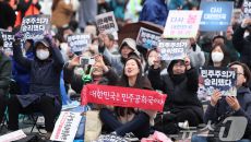 '윤석열 탄핵 축하' 축제분위기 노래 부르고 깃발 흔들며 집회 참여 차·떡 건네며 기쁨 나누고 기념촬영도 "눈·비 거리서 고생- 2025-04-05 17:05
