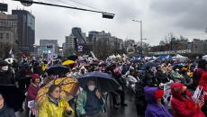 "조기대선은 안된다" 비바람에도 목소리 높이는 尹 탄핵 반대 집회 [현장]