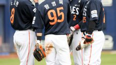 5일 대구 삼성라이온즈파크에서 열린 삼성 라이온즈와 한화 이글스의 경기. 한화 노시환, 황영묵, 심우준, 김태연이 경기 후반부- 2025-04-05 16:42