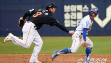 5일 대구 삼성라이온즈파크에서 열린 삼성 라이온즈와 한화 이글스의 경기. 5회말 1사 2루 삼성 구자욱 유격수 땅볼 때 런다운- 2025-04-05 16:15