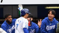 5일 대구 삼성라이온즈파크에서 열린 삼성 라이온즈와 한화 이글스의 경기. 1회말 선두타자 삼성 이재현이 솔로포를 날린 뒤 환호- 2025-04-05 16:13
