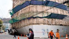 여수 거북선공원 인근 건물 해체 중 기울어져 구조물 낙하