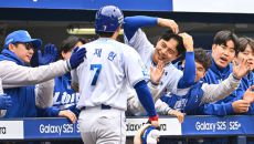 [사진] 솔로포 이재현, 김영웅 축하