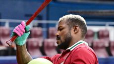 [사진]푸이그,'짐볼을 활용한 타격 연습'