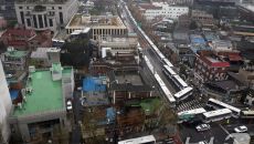(서울=뉴스1) 이동해 기자 = 윤석열 전 대통령의 파면 선고가 하루 지난 5일 서울 종로구 헌법재판소 앞 도로에 경찰 차벽이- 2025-04-05 13:38