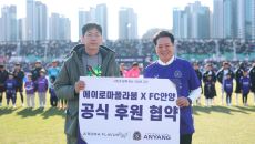 프로축구 K리그1 FC안양이 에이로마플라붐과 광고 후원 협약을 체결했다. 지난 30일 안양종합운동장에서 열린 FC안양과 전북현- 2025-04-05 11:04