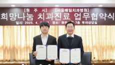 [박형식 기자] (원주=국제뉴스) 박형식 기자 = 원주시와 서울매일치과병원은 지난 3일 시청 7층 투자상담실에서 '희망나눔 치- 2025-04-05 10:36