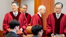 ▲ 4일 서울 종로구 헌법재판소 대심판정에서 열린 윤석열 대통령의 탄핵심판 선고에 문형배 헌법재판소장 권한대행을 비롯한 헌법재- 2025-04-05 10:01