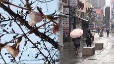 서울 벚꽃 일찍 개화했는데… 불청객 '황사 비'
