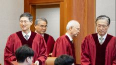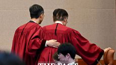 심판정 입장하는 헌법재판관들. 4일 헌법재판소 대심판정에서 열린 윤석열 대통령 탄핵심판 선고에 문형배 헌법재판소장 권한대행을- 2025-04-05 09:38