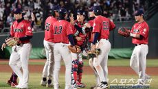 [포토] 정철원 '승리 지키고 주먹 불끈'