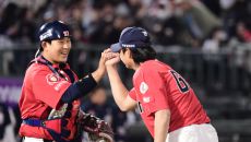5일 부산 사직야구장에서 열린 KBO리그 롯데와 두산의 경기. 롯데가 두산에 승리했다. 경기 종료 후 정철원과 하이파이브 나누- 2025-04-05 20:07