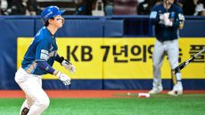 [사진]박건우,'시원한 배트 플립과 함께 달아난다'