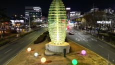 [구미=뉴시스] 박홍식 기자 = 경북 구미시는 구미4국가산업 관문인 옥계지하차도 입구에 '미래의 씨앗' 조형물에 경관조명을 설- 2025-04-05 19:08