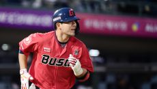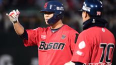 5일 부산 사직야구장에서 열린 KBO리그 롯데와 두산의 경기. 5회 2사 만루. 2타점 적시타를 날린 롯데 김민성. 부산=송정- 2025-04-05 18:57