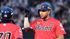 5일 부산 사직야구장에서 열린 KBO리그 롯데와 두산의 경기. 5회 1타점 적시타를 날린 롯데 레이예스. 부산=송정헌 기자so- 2025-04-05 18:42