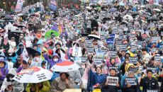 비오는 주말 광화문 ‘尹 탄핵’ 무효·인용 축하 집회