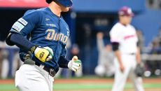 김태형도 미소 활짝!...'80억 포수' 유강남, 130m 대형 마수걸이 홈런 폭발