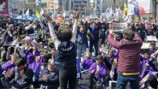 윤석열 전 대통령이 파면된 이튿날인 5일 탄핵 촉구를 주장한 단체들이 서울 도심에 모여 자축했다. 윤 전 대통령의 파면을 요구- 2025-04-05 18:17