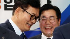 송영길 전 더불어민주당 대표가 20일 인천 남동구 더불어민주당 인천시당에 복당신청서를 접수 후 미소지으며 박찬대 의원과 대화하- 2026-02-20 15:25