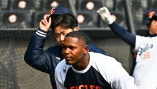 [사진]페라자,'감독님께 복귀 인사하며 하이파이브'