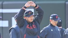 [사진] 시범경기 앞두고 몸푸는 롯데 윤동희