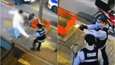 '묻지마 폭행' 190cm 거구男, 테이저건 맞고도 멀쩡...경찰 4명이 제압 [영상]