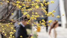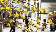 봄의 전령사 산수유 개화한 서울중앙지방법원