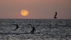 [서울=뉴시스] 류현주 기자 = 11일(현지 시간) 이스라엘 텔아비브 지중해에서 카이트서퍼들이 이란과의 전쟁 속에서도 바람을- 2026-03-12 18:00