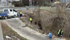 무단투기 처리 기동반이 하천변 불법쓰레기를 신속히 처리하고 있다. [사진=전라남도 나주시][전남 광주=팍스경제TV] 전라남도- 2026-03-12 17:17