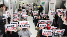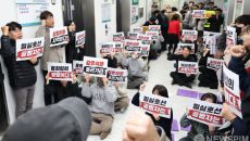 [서울=뉴스핌] 장동규 기자 = 전국언론노동조합 조합원들이 12일 오후 서울 양천구 방송미디어통신심의위원회에서 열리는 2026- 2026-03-12 16:28
