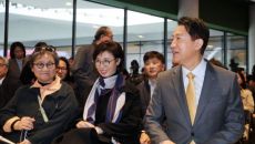 12일 서울 금천구 서울시립 서서울미술관 개관식에 참석한 오세훈 서울시장과 노소영 아트센터 나비 미술관장이 참석, 박수를 치고- 2026-03-12 15:47