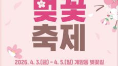 상서개암동 벚꽃축제 추진위원회는 부안군의 대표 봄꽃 축제인 '제8회 개암동 벚꽃축제'가 오는 4월 3일부터 5일까지 상서면 개- 2026-03-12 15:40