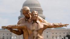 '타이타닉 주인공처럼' 美 의회 앞 트럼프-엡스타인 풍자 조형물 세워져 [뉴시스Pic]