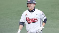[ST포토] 정수빈, 홈런 미소 활짝