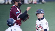 [포토] 정수빈 '시범경기 첫째날 기분 좋은 홈런'