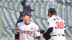 [사진] 마운드에서 만난 김진욱과 유강남