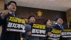 개혁진보 4당 의원들이 12일 오후 서울 여의도 국회 본회의장 앞에서 정치개혁 촉구 피켓팅을 하고 있다. 개혁진보 4당에는 조- 2026-03-12 14:37