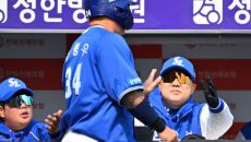 [사진]박진만 감독,'최형우의 득점에 미소 활짝'