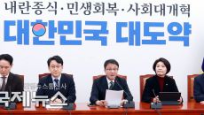 [이용우 기자] (서울=국제뉴스) 한병도 더불어민주당 원내대표가 12일 오전 서울 여의도 국회에서 열린 정책조정회의에서 발언을- 2026-03-12 13:25