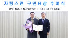 [헤럴드경제=박종일 선임기자]구로구(구청장 장인홍)가 12일 구청 소통홀에서 구민의 생명 구조에 기여한 정귀현 씨에게 ‘자랑스- 2026-03-12 13:13