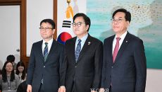 [더팩트ㅣ국회=박헌우 기자] 우원식 국회의장과 한병도 더불어민주당 원내대표, 송언석 국민흼힘 원내대표가 12일 오전 서울 여의- 2026-03-12 12:51