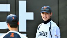 [사진]문동주,'엄상백과 얘기하며 미소'