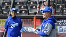 12일 대전한화생명볼파크에서 열린 KBO리그 한화 이글스와 삼성 라이온즈의 시범경기. 삼성 최형우가 훈련을 지켜보고 있다. 대- 2026-03-12 12:32